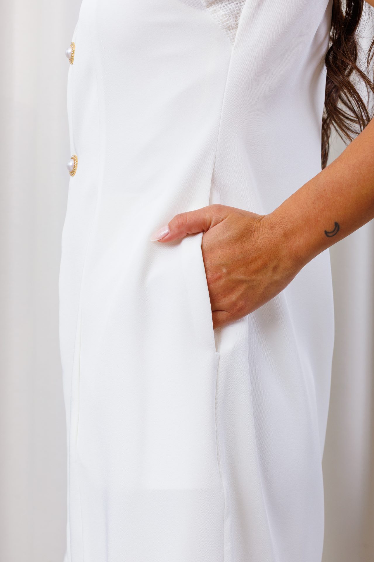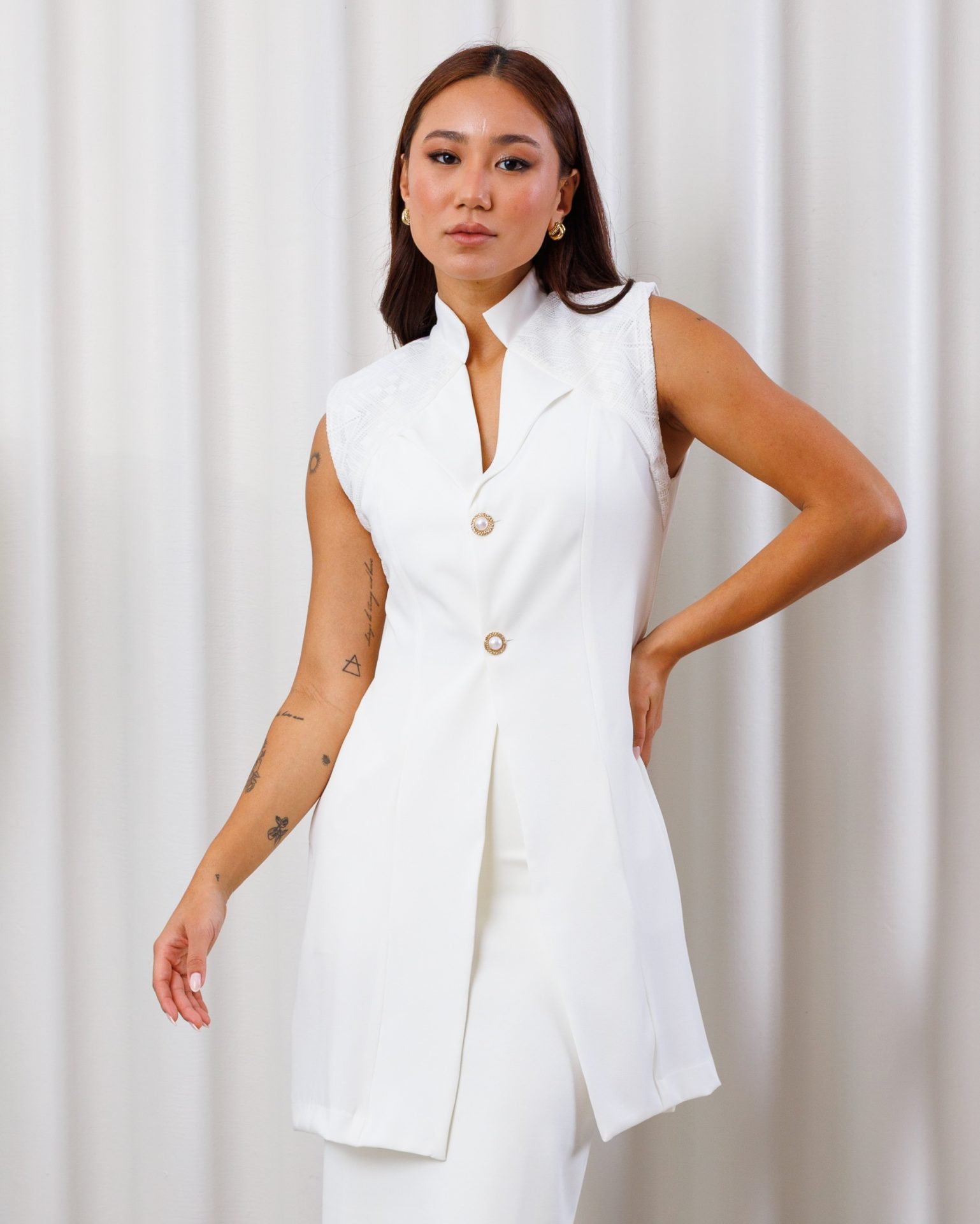 Jaleco Colete Feminino Alfaiataria Rita Off-White