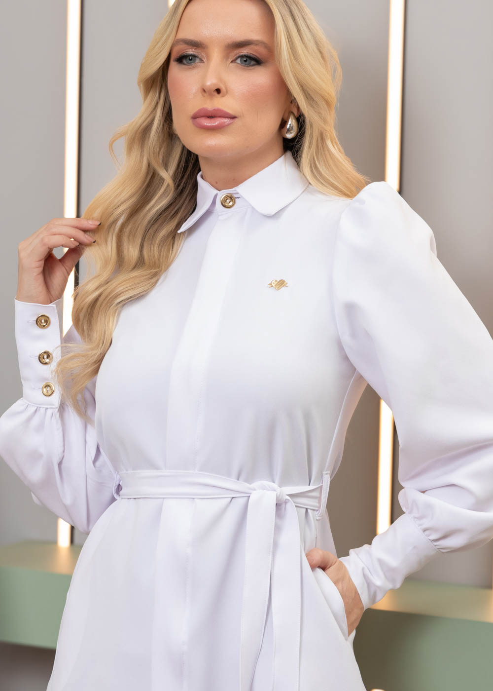 Jaleco Feminino Acinturado Alfaiataria Lexie Branco