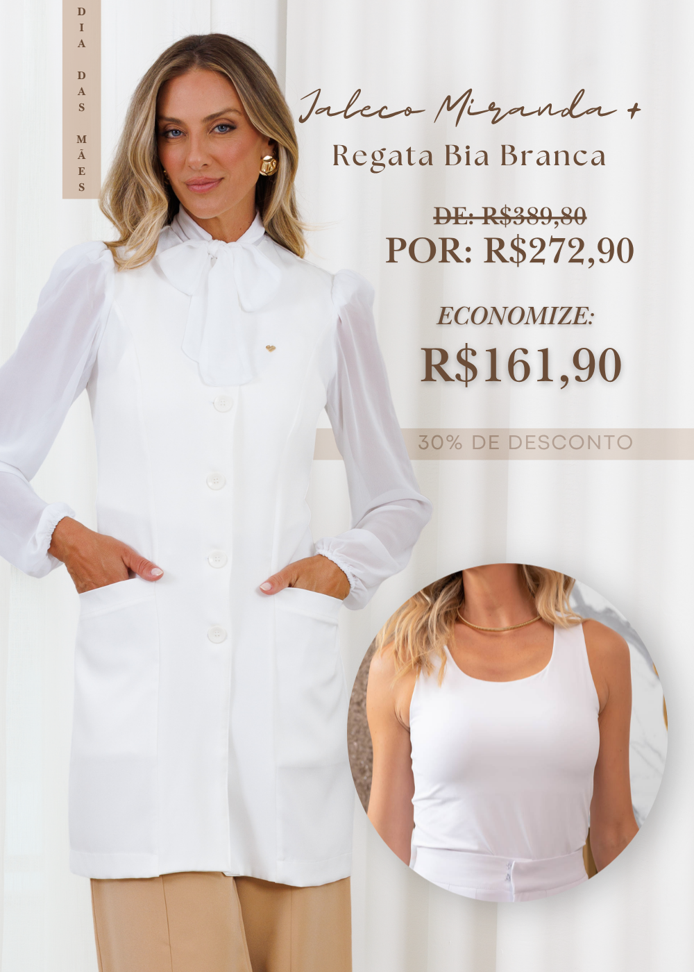 Combo Mãe Elegante: Jaleco Miranda + Regata Bia Branca