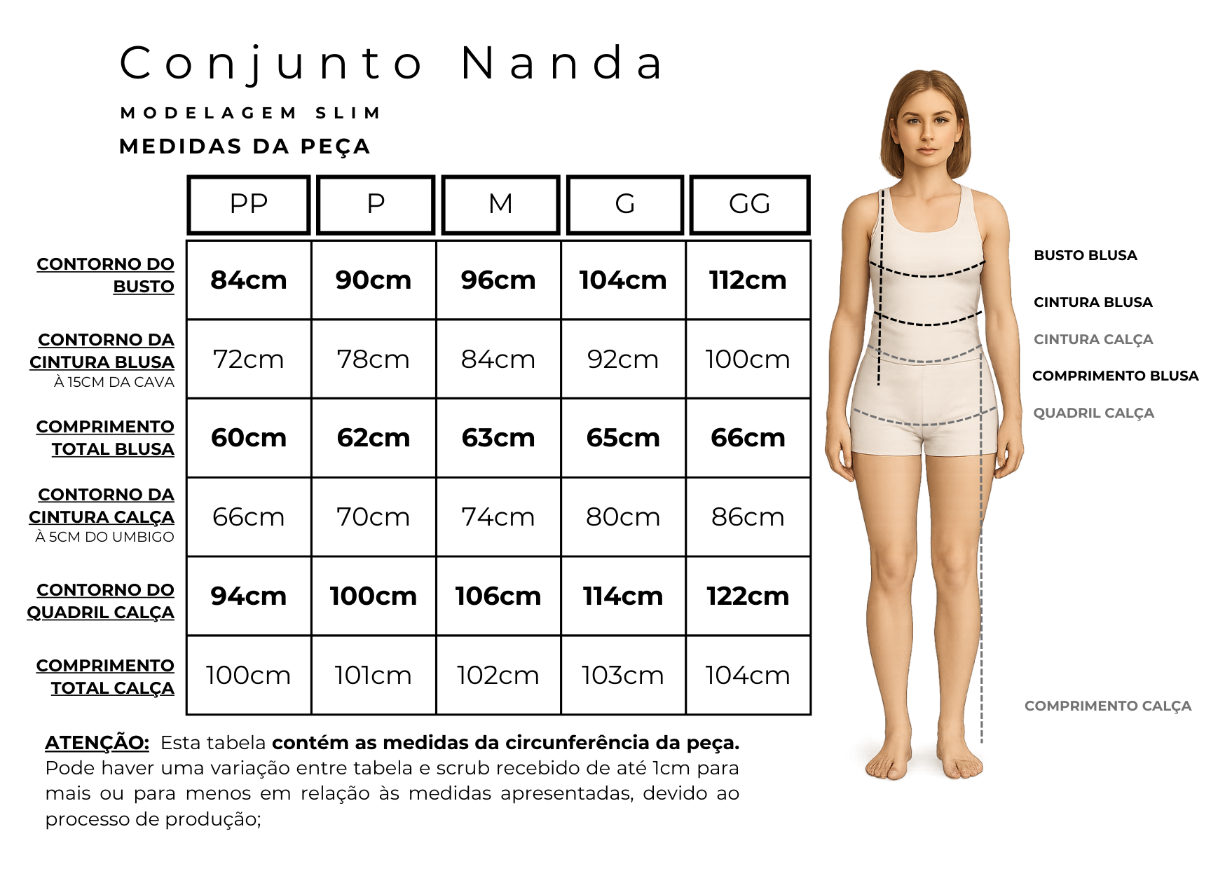 O Conjunto Nanda foi criado para vestir sua rotina com conforto e elegância simples, valorizando a silhueta e trazendo praticidade para o seu dia a dia, tudo em um look completo pensado para realçar o que você tem de melhor, se você deseja um look que traduza cuidado pessoal e profissional com fluidez e personalidade, o conjunto Nanda é seu novo essencial!