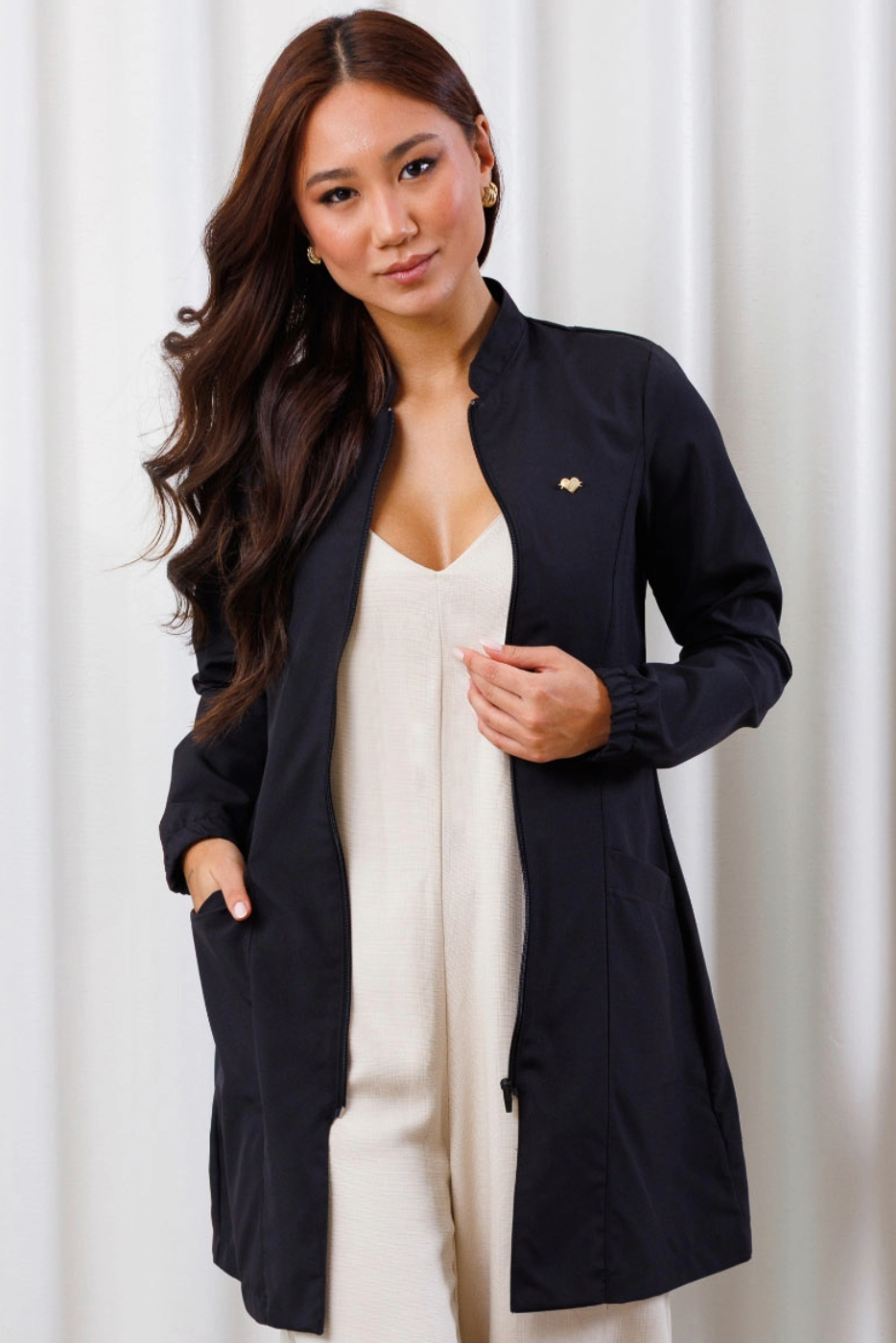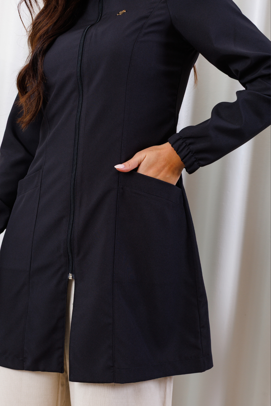 A modelagem slim garante um visual elegante sem perder conforto. Conta com gola padre, zíper frontal destacável, elástico nos punhos, recortes estratégicos que valorizam a silhueta e abertura nas costas para maior mobilidade. Além disso, o Jaleco Arizona está dentro das recomendações da norma ABNT NBR16264, sendo perfeito para estudantes e profissionais da saúde, além destes benefícios, este modelo permite personalização em bordado com nome, logo ou ambos. Um toque único para valorizar ainda mais sua presença profissional!