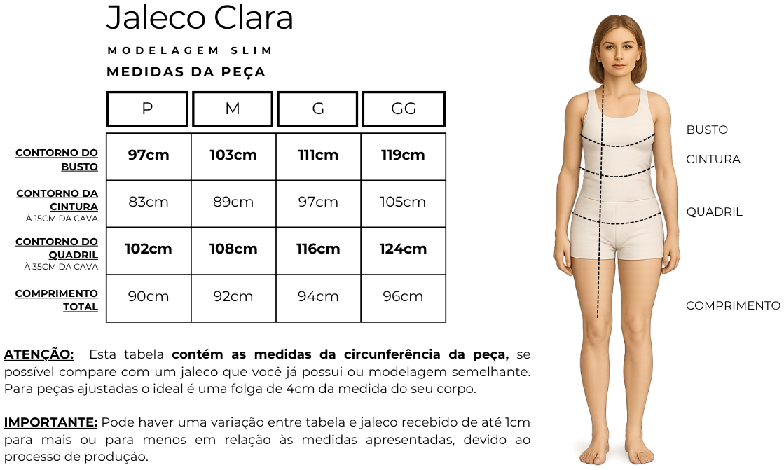 Jaleco Clara • Modelo Feminino com Zíper e Tecido Leve para Saúde