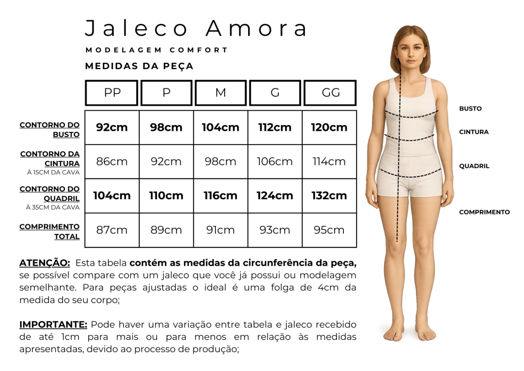 - Estilo com leveza: ideal para quem busca um jaleco moderno, confortável e cheio de identidade.