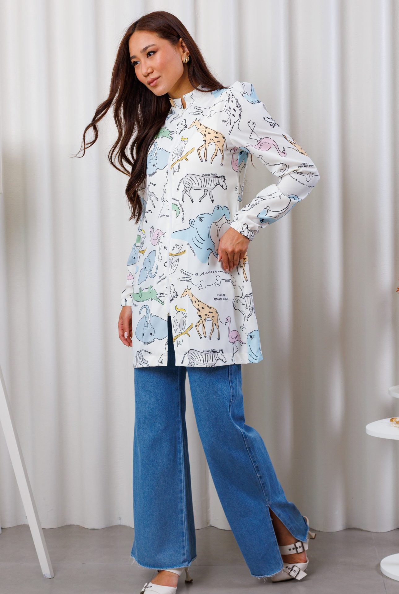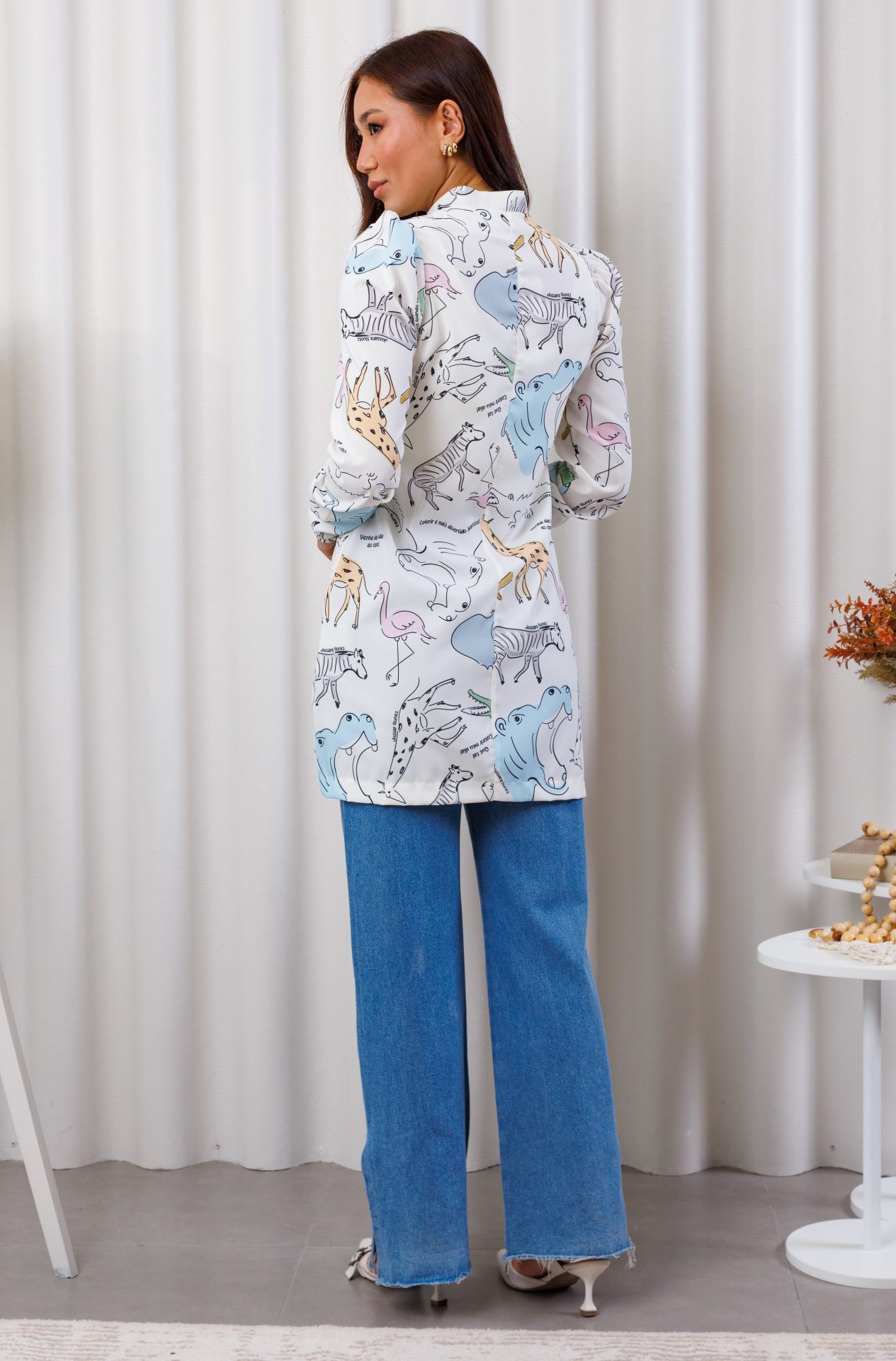 - Modelagem que combina com a leveza da proposta: caimento sutilmente acinturado com faixa ajustável, bolsos laterais, manga bufante com elástico de 2,5 cm no punho e zíper frontal destacável, pensada para valorizar sem perder a praticidade.
