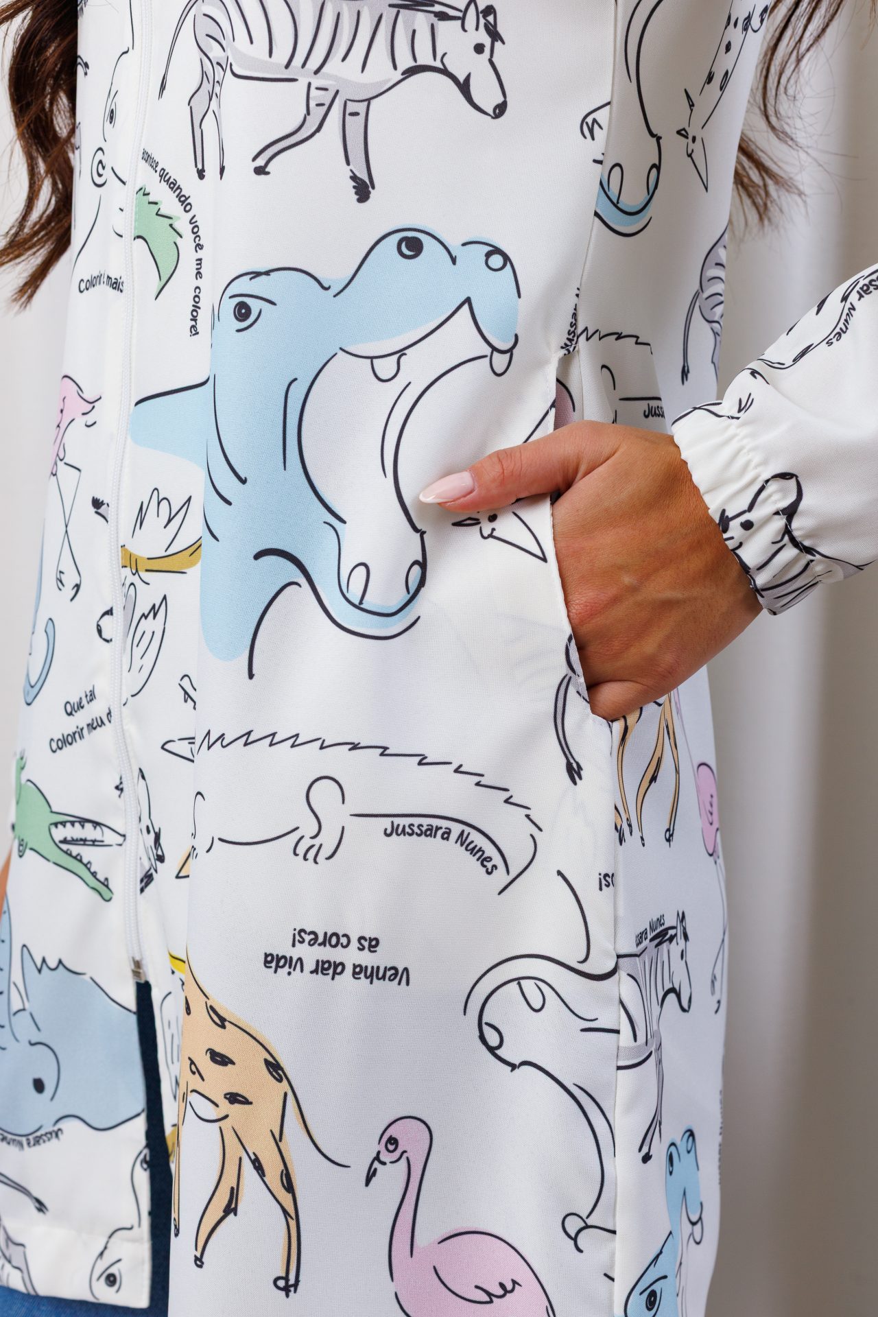 O Jaleco Feminino Selva Encantada (Jaleco para Colorir) é um convite à criatividade, perfeito para transformar o atendimento em uma experiência acolhedora e inesquecível, especialmente com os pequenos. Com tecido de qualidade, modelagem confortável e uma proposta única, esse jaleco leva leveza, cor e afeto para o dia da clínica, desenvolvido para realçar ainda mais vínculo profissional e paciente, o jaleco Selva Encantada traz estampas encantadoras de animais para que os pacientes deixem sua marca personalizada no jaleco, acompanha um livreto com a história para auxiliar a introdução do seu atendimento e duas canetas de colorir, com quatro pontas de cores diferentes para começar a diversão, vale ressaltar que a tinta não sai na hora da lavagem, a intenção é que você profissional guarde um pedacinho de cada paciente com você na sua jornada diária!