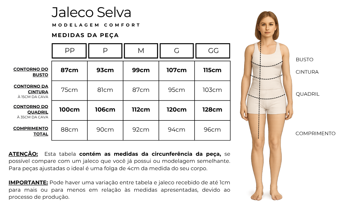 Nós, da Jussara Nunes Jalecos, queremos garantir a sua assertividade na escolha do tamanho ideal para você, para conferir suas medidas e escolher o seu jaleco ideal, confira o post no blog, feito para que você encontre a peça perfeita, também preparamos um vídeo especial para você de como tirar as medidas
