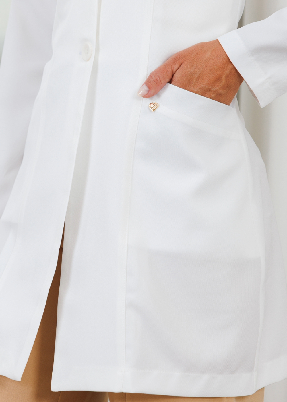 Jaleco feminino clean e funcional, com modelagem slim, recortes ergonômicos e tecido gabardine estruturado. Desenvolvido para oferecer conforto, mobilidade e um visual profissional elegante durante todo o dia;