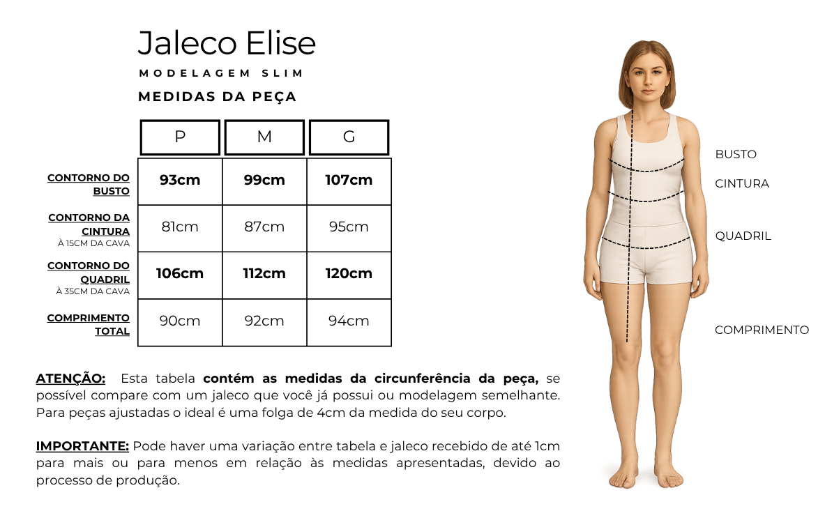 O Jaleco Elise foi criado para mulheres que desejam aliar elegância, conforto e poder de presença, cada detalhe reflete sofisticação e cuidado, ideal para quem quer vestir não só um jaleco, mas uma afirmação de estilo no atendimento, se você busca vestir algo que combine autoridade, feminilidade e requinte, o Elise é sua escolha ideal, aquela peça que marca presença e inspira confiança.