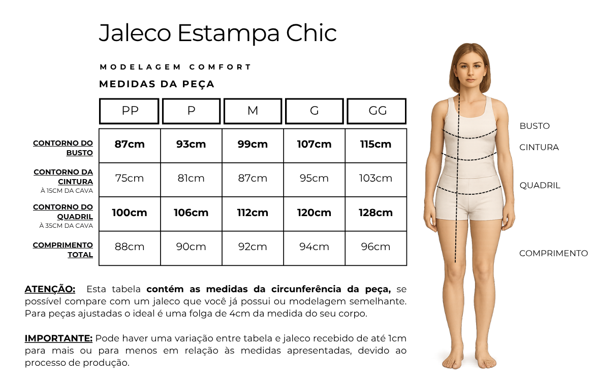 - Modelagem confortável e ergonômica: corte mais soltinho que permite liberdade nos movimentos, ideal para jornadas longas.