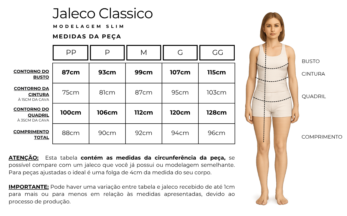 O Jaleco Clássico é a base ideal para uma imagem que transmite confiança e tradição, com modelagem casual e cortes inspirados na alfaiataria clássica, ele entrega praticidade com presença, se você quer vestir uma imagem profissional que une credibilidade ao cuidado, o Jaleco Clássico vai guiar esse caminho com charme na medida ideal para a sua rotina.
