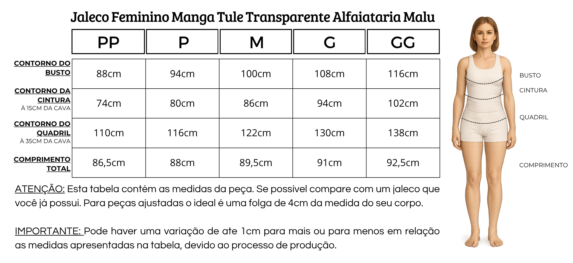Jaleco Feminino Manga Tule Transparente Alfaiataria Malu