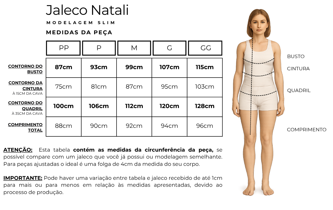 Nós, da Jussara Nunes Jalecos, queremos garantir a sua assertividade na escolha do tamanho ideal para você, para conferir suas medidas e escolher o seu jaleco ideal, confira o post no blog, feito para que você encontre a peça perfeita, também preparamos um vídeo especial pra você de como tirar as medidas