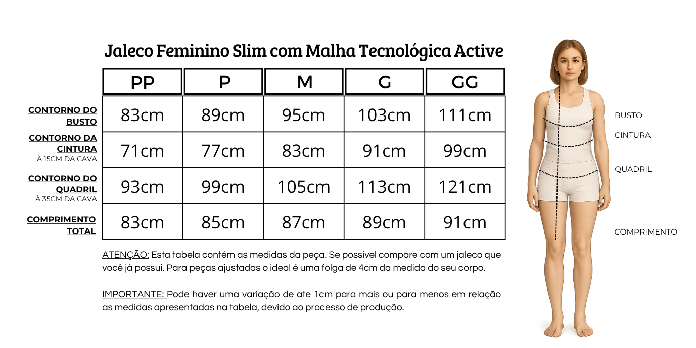 Nós, da Jussara Nunes Jalecos, queremos garantir a sua assertividade na escolha do tamanho ideal para você, para conferir suas medidas e escolher o seu jaleco ideal, confira o post no blog, feito para que você encontre a peça perfeita, também preparamos um vídeo especial para você de como tirar as medidas