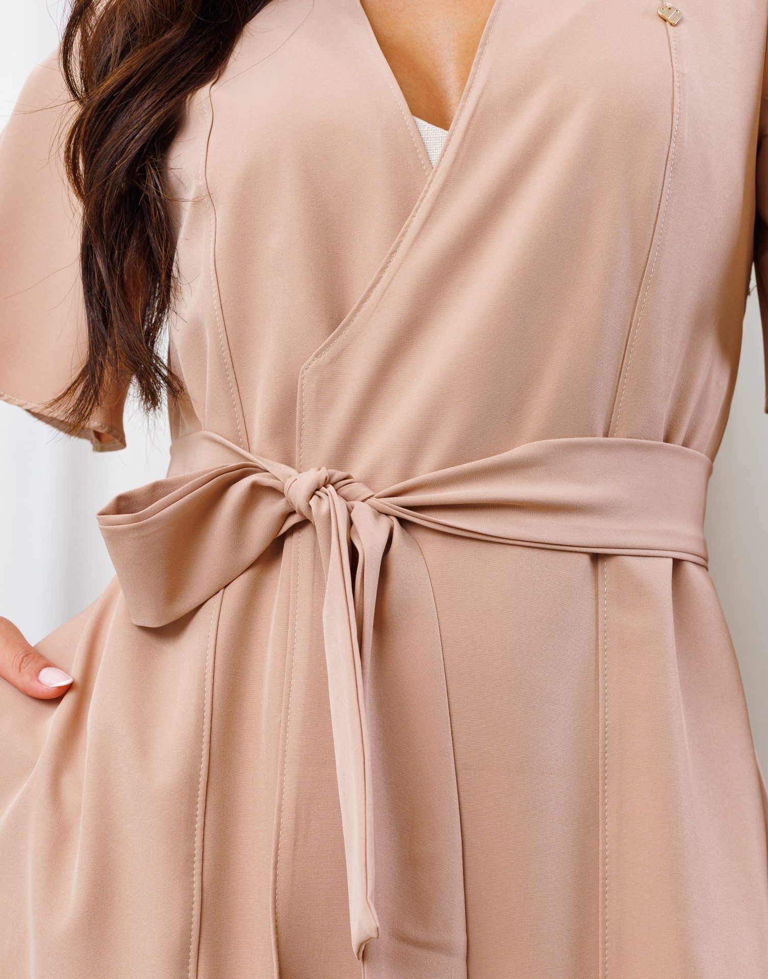 - Faixa de amarração: aplicada desde o recorte central das costas, permite ajustar ao seu corpo com charme e definição.