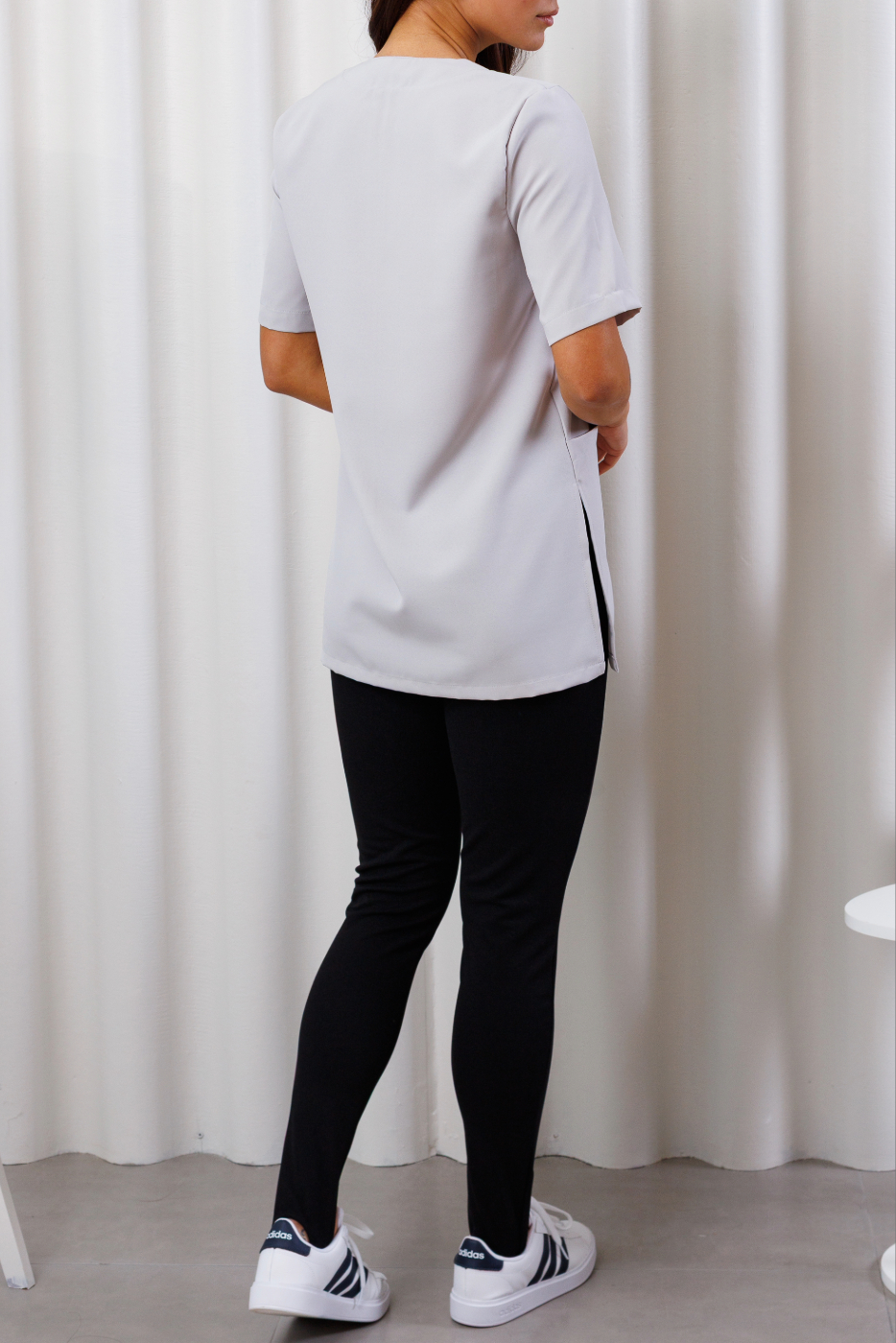 - Look pronto e estiloso: o duo de tecidos cria um visual moderno, técnico e fluido. Um uniforme que te acompanha com elegância, do consultório à rotina agitada.
