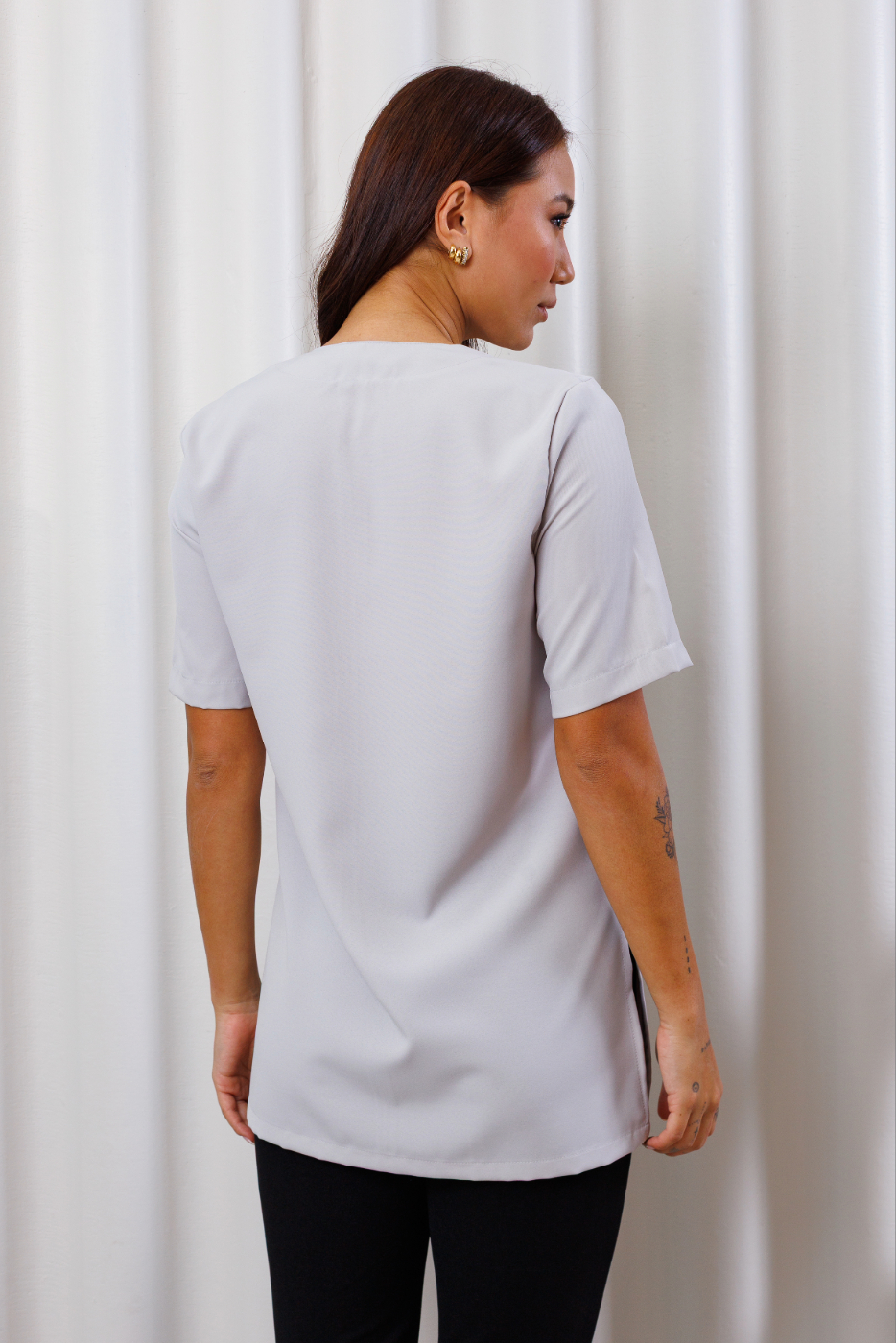 - Blusa leve, solta e ergonômica: confeccionada em Oxfordine 100% poliéster, proporciona conforto, respirabilidade e liberdade nos movimentos. Conta com decote V, mangas curtas, dois bolsos frontais e aberturas laterais que garantem funcionalidade e fluidez na movimentação.